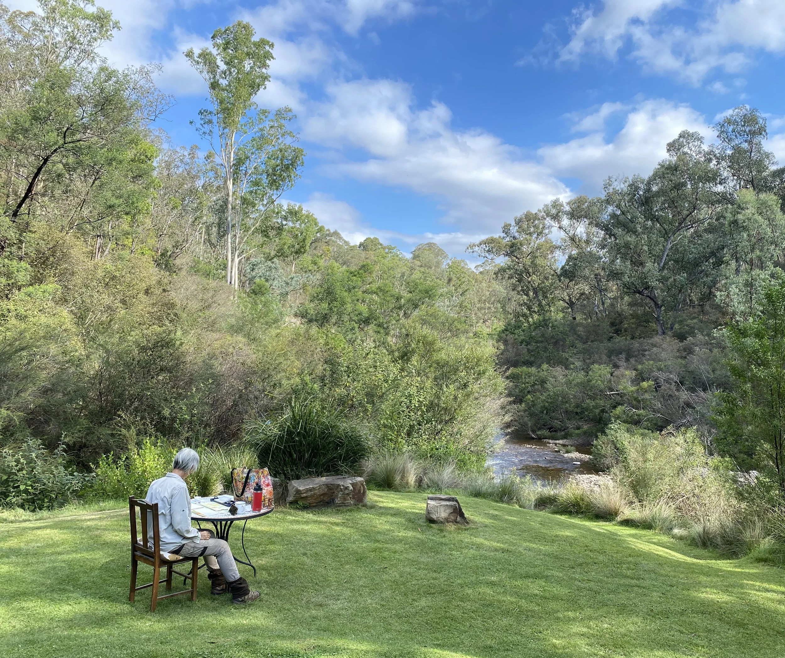 In an ongoing triptych series, I explore nature’s intricate relationships, where change and stability are inseparable. Unseen forces bind the natural world in a wondrous, continuous exchange. Living Memory captures a place I’ve returned to for many years, a landscape in constant flux. The light shifts with the seasons, the creek reshapes, and a tree I once knew as a sapling now stands tall. Change is inevitable, yet within it lies a quiet permanence. These marks hold the weight of years spent looking, remembering, and knowing a place as it grows alongside me.