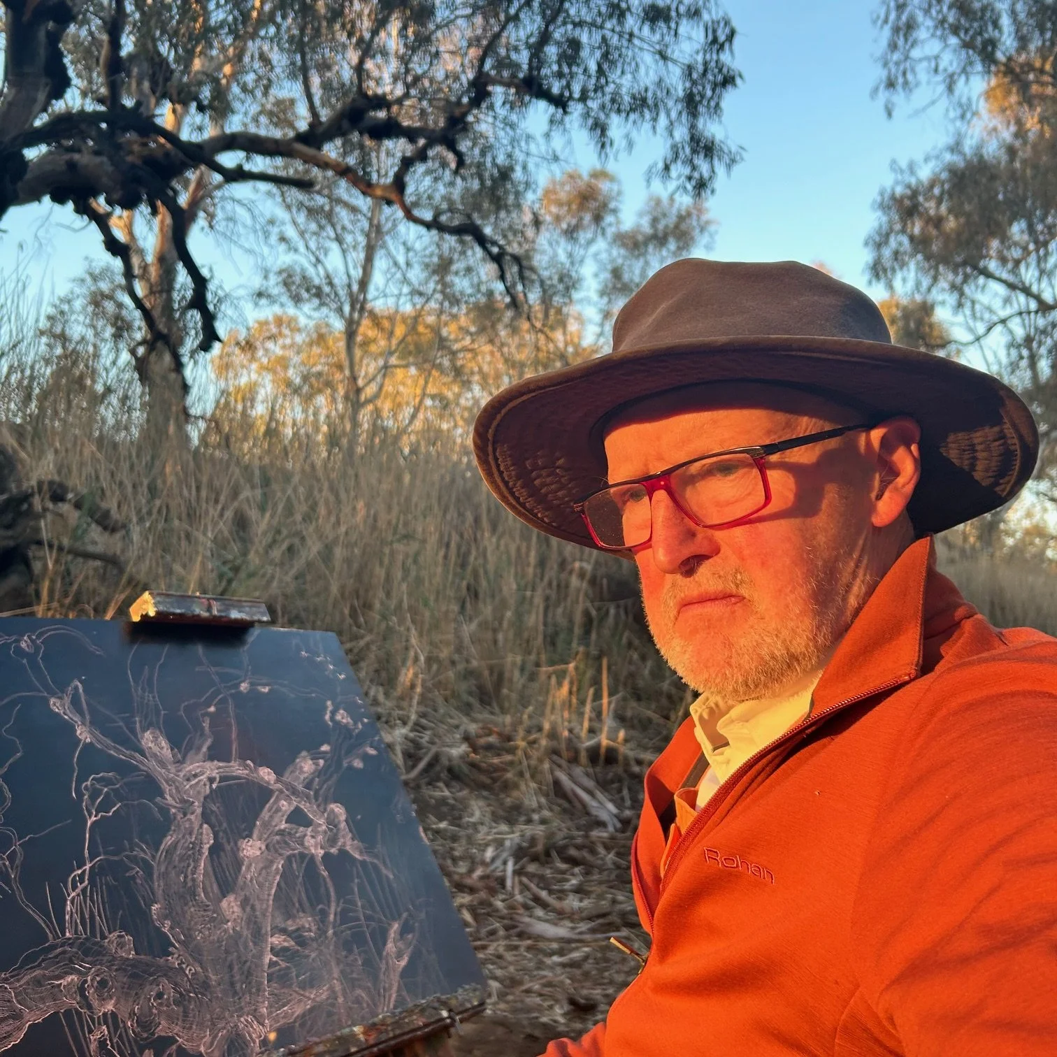 I read Dave Witty’s book What the Trees See following a research trip to the Eastern Wimmera of Victoria. The journey involved camping adjacent to the dry Richardson River bed with several other artists. The Witty thesis of Australia’s history framed by the continent’s special tree species or more specifically ‘observed’ by those sylvan organism’s encourages an anthropomorphic reading of nature. My time on the Richardson drawing onto copper plates and painting on canvas images of particular trees gave me a sense of ‘their’ great age, their complicated beauty and more specifically a type of personality.